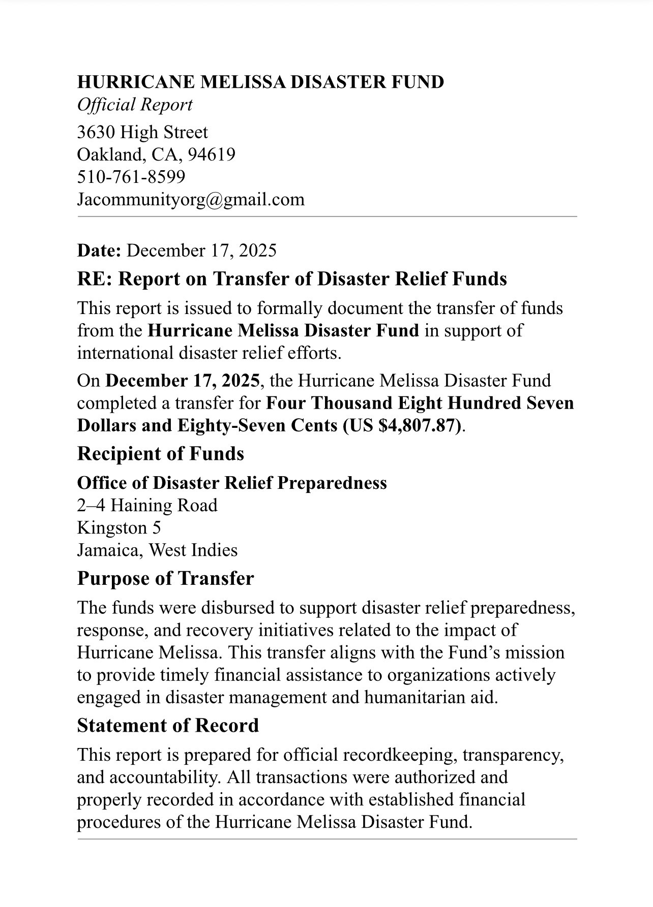 Help Us Support Jamaica’s Post Hurricane Melissa Relief Efforts